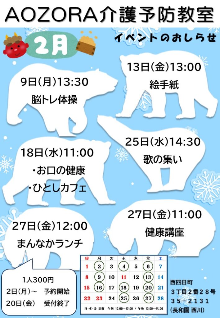 AOZORA介護予防教室 2月イベントのお知らせ